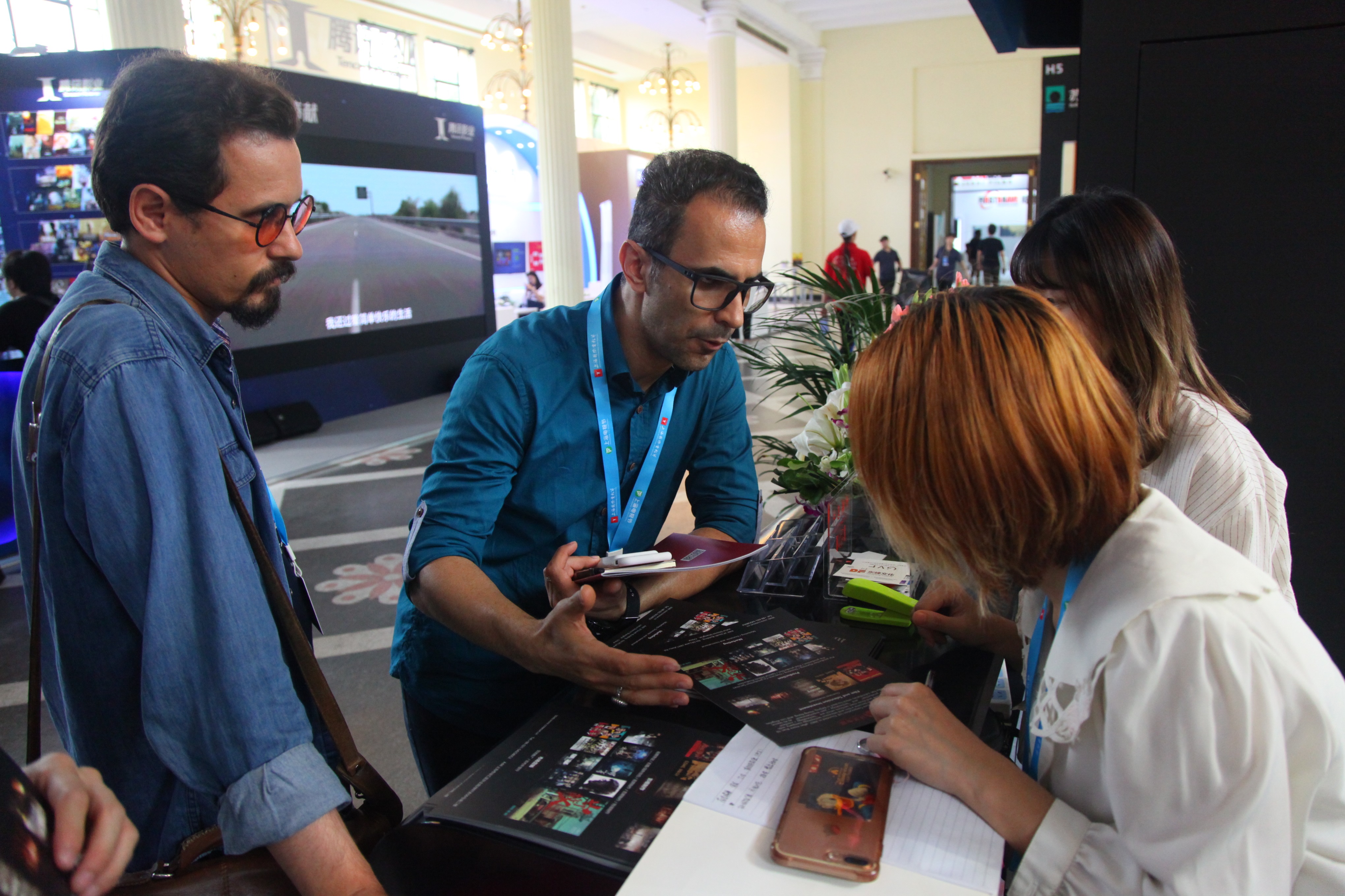 開圣傳媒所在的西一館H6展臺,門庭若市一如往年,本次主推的海外投資項目——如與BBC、ITV共同出品的英劇《世界大戰(zhàn)》;由安吉麗娜·朱莉領(lǐng)銜主演的好萊塢奇幻電影《COME AWAY》;由邁克爾·法斯賓德、阿諾·施瓦辛格聯(lián)袂出演的動作電影《KUNG FURY2》,吸引了眾多電影人的目光,來自塞爾維亞、伊朗、印度、馬來西亞、泰國等國家的業(yè)界人士紛至沓來,尋求機遇洽談合作。抱著期望來,載著收獲回,成了世界各地行業(yè)人的共同寫照。